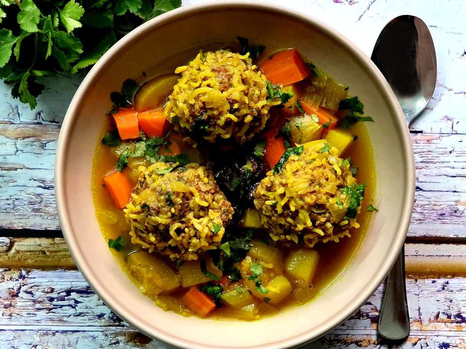 יוצרים כדורים ומכניסים לסיר. מנערים מעט את הסיר (לא מערבבים!! הקציצות יתפרקו), סוגרים מכסה ומבשלים חצי שעה. לאחר חצי שעה, מפזרים חופן כוסברה קצוצה, סוגרים מכסה ומכבים להבה.